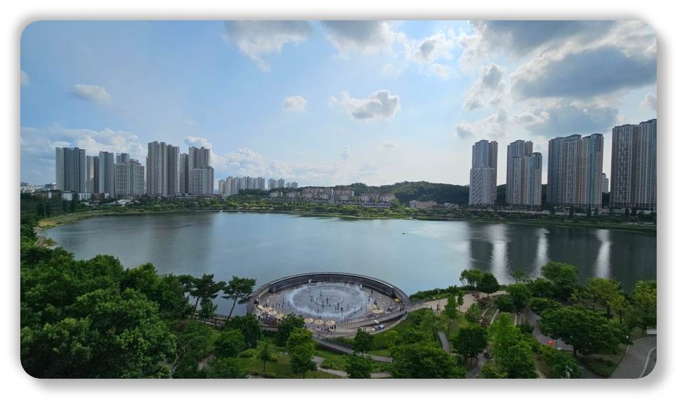💡 광교중앙역에서 나와 경기도청사 방향으로 걷다 보면 호수공원의 전경이 시야에 들어오며,