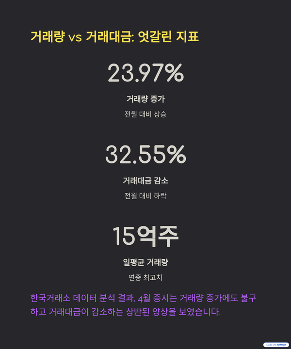 최근 국내 주식시장에서는 정치적 이슈가 투자 방향에 큰 영향을 주고 있습니다. 특히 조기 대선이 확정되면서 정치 테마주들이 주목받고, 소형주의 매매가 급증한 반면 대형주는 소외되는 모습이 두드러졌습니다. 이러한 상황 속에서 일평균 거래량은 크게 늘어났지만, 거래대금은 오히려 감소하는 아이러니한 흐름이 연출되고 있습니다. 이는 단기적인 시세차익을 노린 매매가 주를 이루면서 거래는 활발했지만 실제 자금 유입은 적었다는 해석이 가능합니다.
