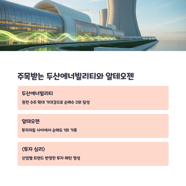 삼성전자 외에도 두산에너빌리티, 알테오젠 등의 종목이 각기 다른 투자 흐름을 보이고 있습니다. 두산에너빌리티는 원전 관련 수주 확대 기대감에 힘입어 순매수 2위를 기록하며 상승 흐름을 나타냈습니다. 반면 바이오 업종에서는 알테오젠이 순매도 1위로 나타났고, 이처럼 종목별 흐름이 뚜렷하게 갈리고 있다는 점도 투자자들의 전략적 접근을 시사합니다.