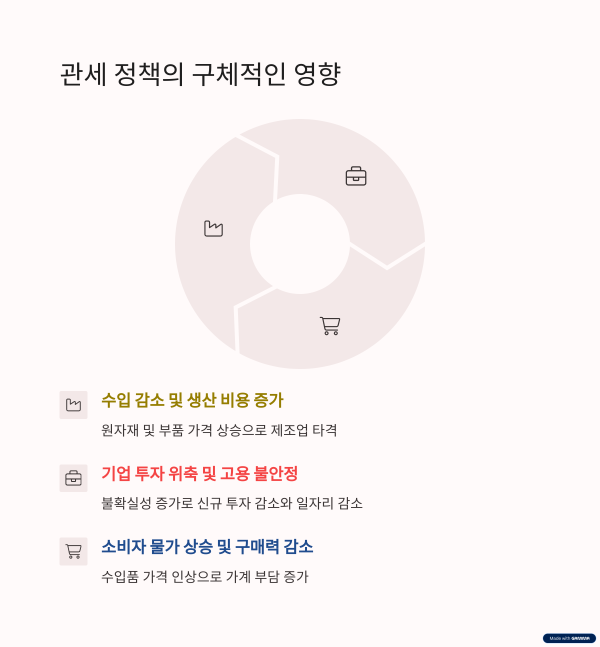 토르스텐 슬록 아폴로 수석 이코노미스트는 현 관세 기조가 유지될 경우 미국 GDP가 약 4% 감소하며, 2분기 연속 마이너스 성장이 높은 확률로 발생할 것이라고 경고했다. 특히 중소기업들은 관세 인상에 따른 추가 비용을 감당할 현금 여력이 부족해 소매업체를 중심으로 대규모 파산 사태가 발생할 위험이 있다고 지적했다.